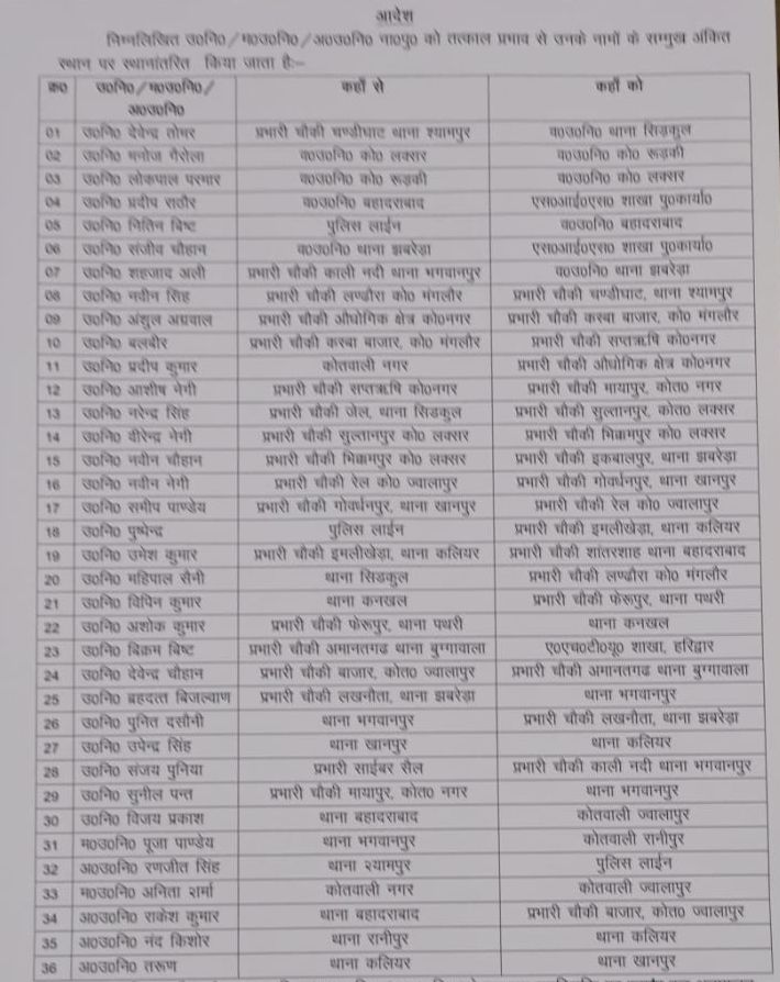 त्यौहारी सीजन में दून के बाद हरिद्वार में चली तबादला एक्सप्रेस, 36 दरोगाओं के हुए तबादले