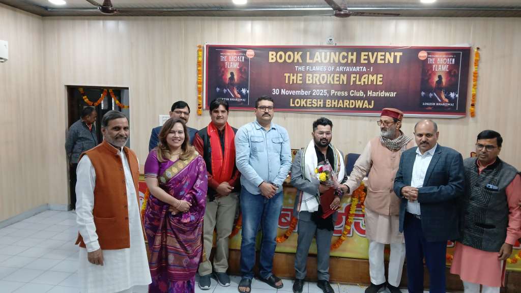 खबर डोज, हरिद्वार। पवित्र गंगा तट पर बसे साहित्य, संस्कृति और अध्यात्म के संगम स्थल हरिद्वार में रविवार को साहित्य जगत का एक ऐतिहासिक क्षण साकार हुआ। प्रेस क्लब हरिद्वार के सभागार में अंग्रेजी उपन्यास “द ब्रोकन फ्लेम” का भव्य विमोचन समारोह आयोजित किया गया। यह कृति हरिद्वार के साहित्यकार लोकेश भारद्वाज द्वारा लिखी गई है। कार्यक्रम में विभिन्न क्षेत्रों से आए गणमान्य अतिथियों की उपस्थिति ने इस आयोजन को अविस्मरणीय बना दिया।