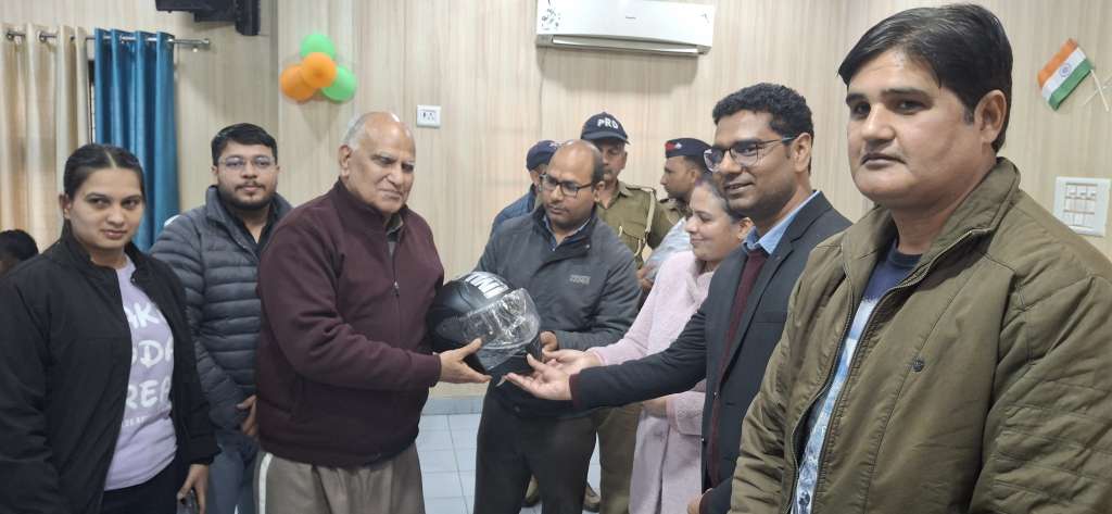 –परिवहन विभाग ने पत्रकारों को वितरित किए हेलमेट