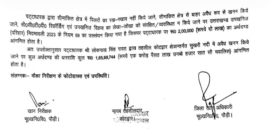 कोटद्वार की सुखरो नदी के पट्टाधारक ने सरकार के राजस्व को लगा दिया लाखों का चूना, रवन्नों में भी कर दिया खेल, खान विभाग ने जारी किया नोटिस